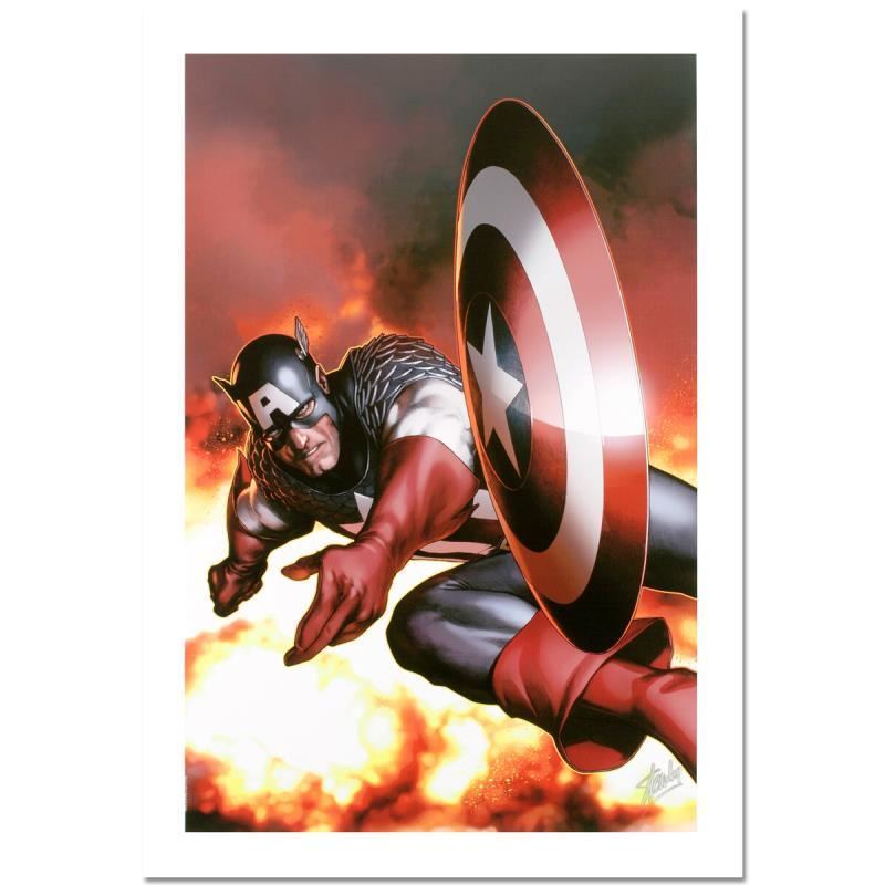 "Captain America #2" is a limited edition giclee on canvas with art by Steve McNiven. Officially licensed by Marvel, this piece is numbered 2/10 and hand signed by creative legend Stan Lee (1922-2018). The piece comes with a certificate of authenticity. Measures approximately 27" x 18".