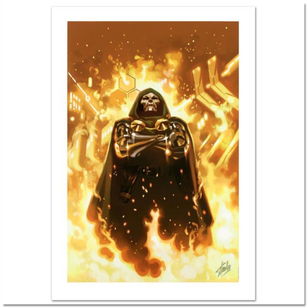 "FF #2" is a limited edition giclee on canvas with art by Daniel Acuna. Officially licensed by Marvel, this piece is numbered 2/99 and hand signed by creative legend Stan Lee (1922-2018). The piece comes with a certificate of authenticity. Measures approximately 27" x 18".