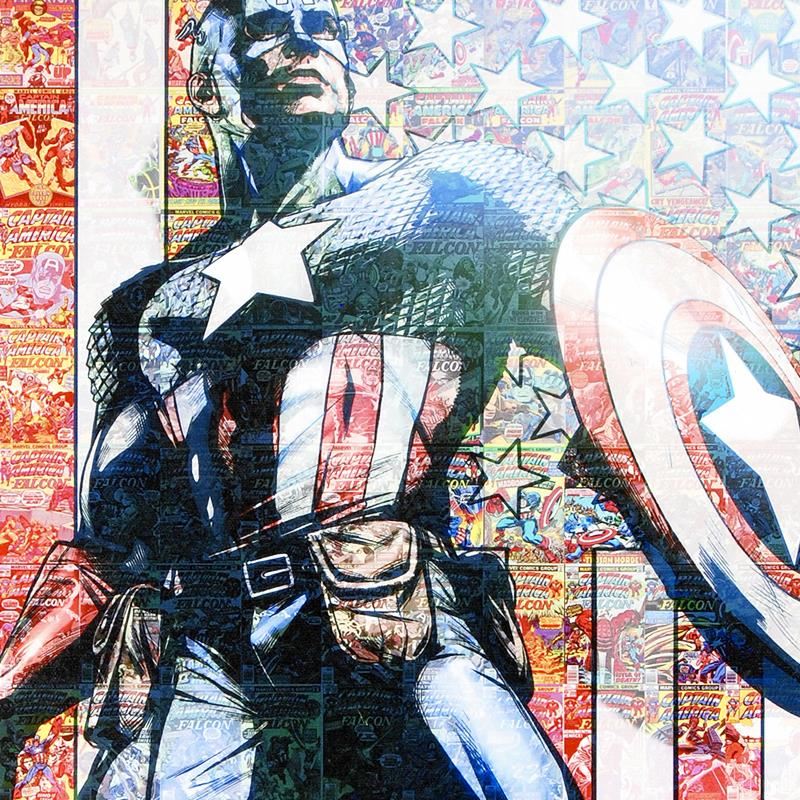A piece of comic book history, this limited edition print, drawn by Elia Bonetti, depicts the popular hero Captain America. "Captain America Theater Of War: Ghosts of My Country #1" is a numbered limited edition giclee on canvas by Elia Bonetti presented by Marvel Comics and hand signed by the great Stan Lee. Includes Certificate of Authenticity! Measure approx. 15" x 22" (image).