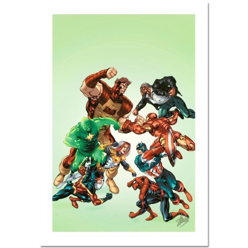 "New Thunderbolts #3" is a limited edition giclee on canvas with art by Tom Grummett". Officially licensed by Marvel, this piece is numbered 2/10 and hand signed by creative legend Stan Lee (1922-2018). The piece comes with a certificate of authenticity. Measures approximately 27" x 18".