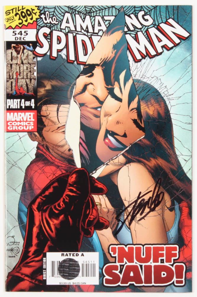 2008 "The Amazing Spider-Man" Issue #545 Direct Edition Marvel Comic Book. Hand-signed in black felt-tip pen by Stan Lee (D.2018).