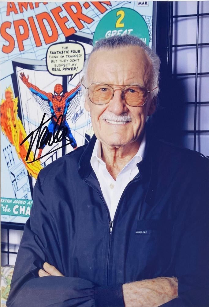 Stan Lee facsimile signed photo. 8x10 inches. This item is a reprint of an original autograph