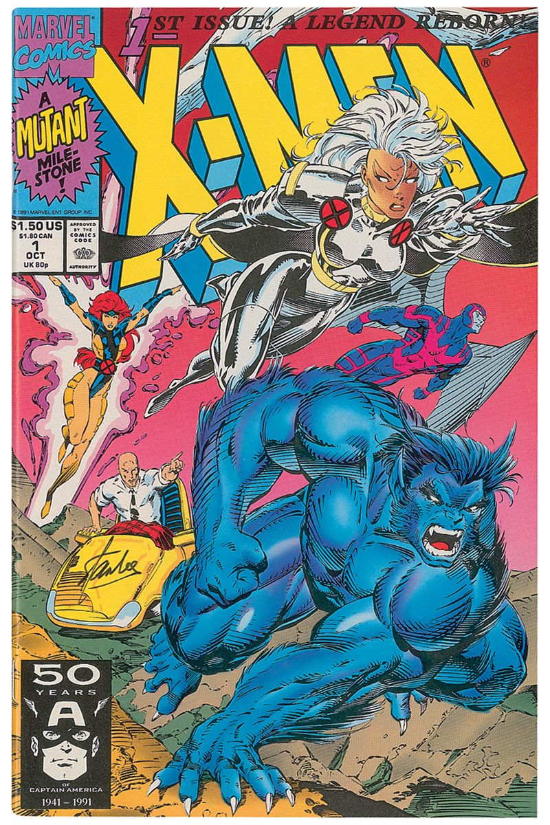Marvel X-Men comic book, October 1991, 6.5 x 10, signed on the front cover in black felt tip. In fine condition.