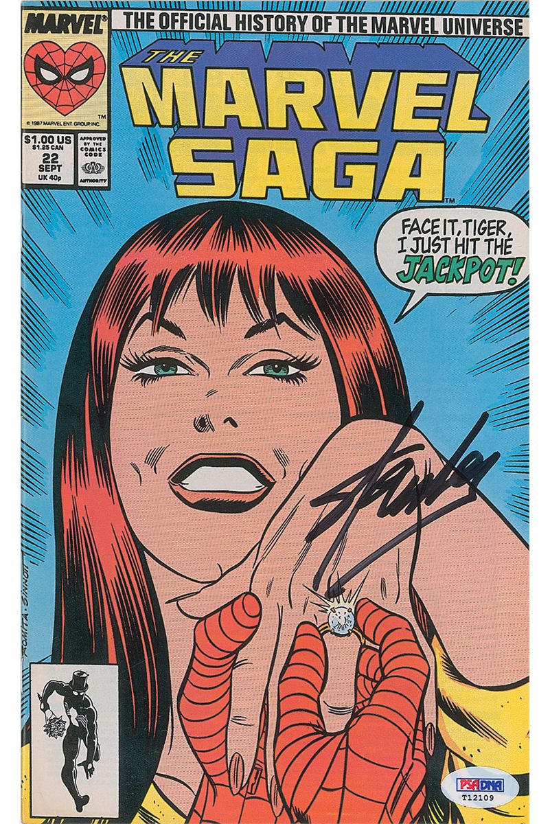 Marvel Saga comic book, September 22, 1987, 6.5 x 10, 32 pages, signed on the front cover in black felt tip. In fine condition, with light toning to pages and a PSA/DNA label affixed to the lower right corner of the cover.