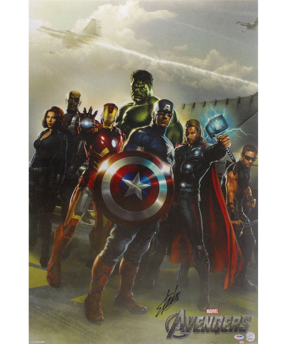 Color 24 x 36 poster of Marvel’s Avengers, signed in black felt tip. Rolled and in fine condition, with a PSA/DNA authentication label affixed to lower corner. The PSA/DNA certificate is not included.