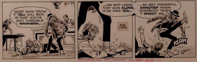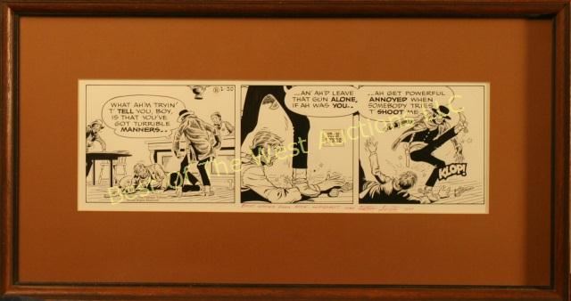 comic strip illustration, "Rick O'Shay and Hipshot", From Chicago Tribune 1969, 5" x 16" sight, Signed Lower Right 1977, with inscription (see photo), -562911-D