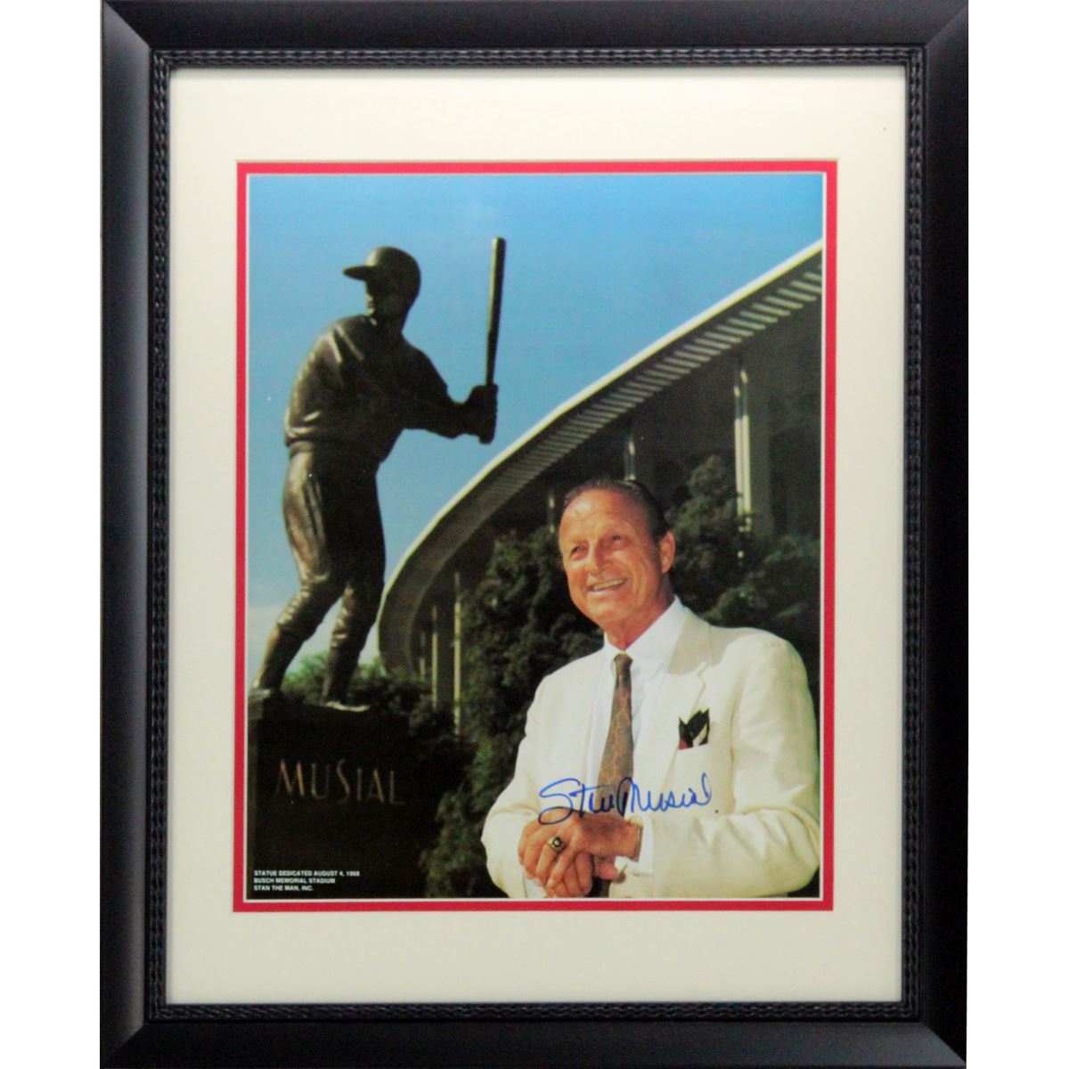 Stan Musial Signed Standing By Musial Statue Framed 11x14 Photo ( Stan The Man Auth)