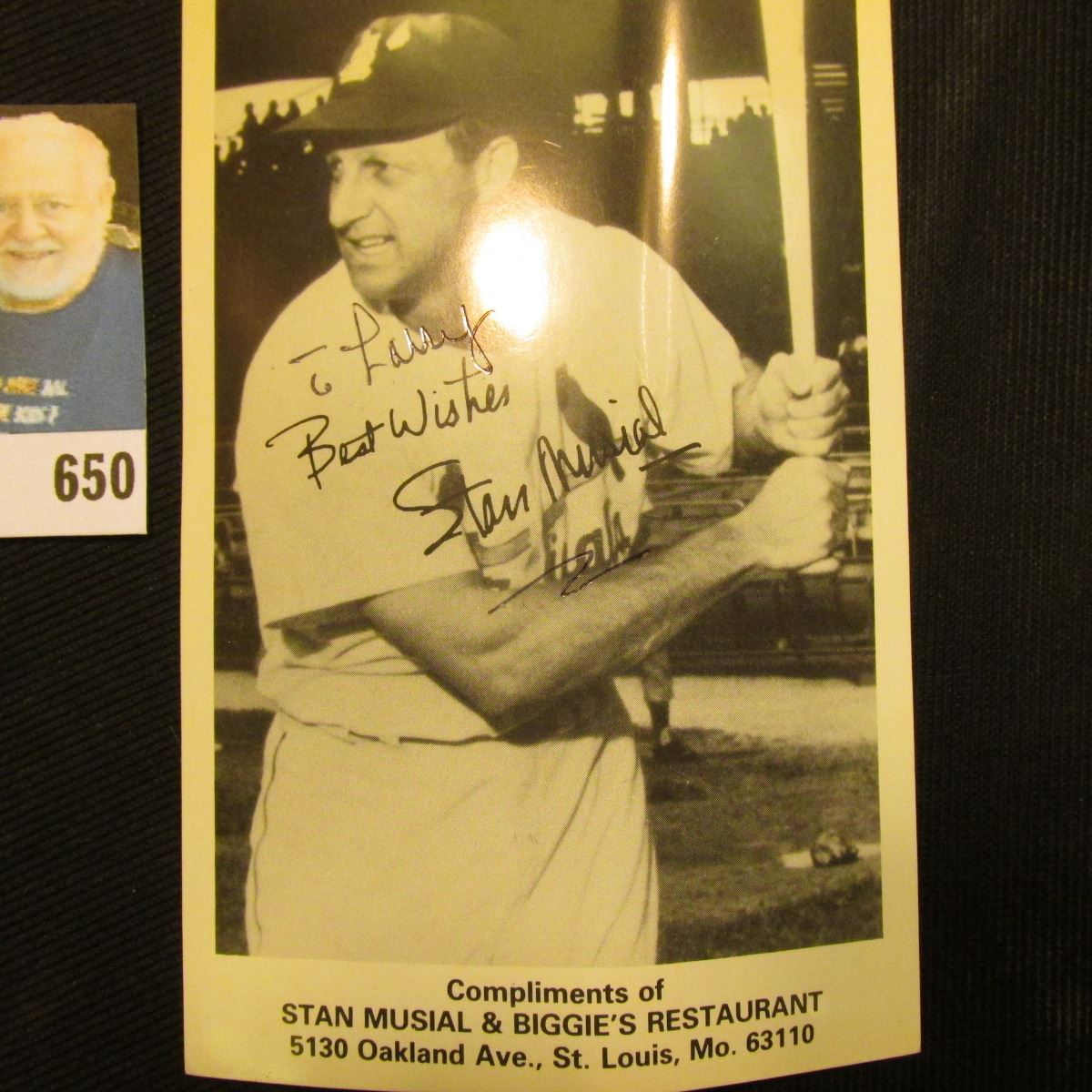 Stan Musial autographed Baseball Card "Compliments of Stan Musial & Biggie's Restaurant…St. Louis, M