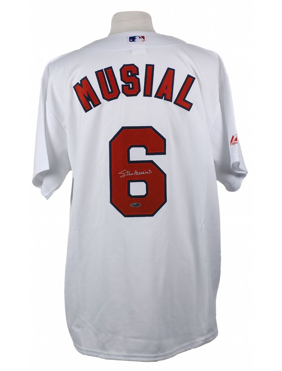 Official Majestic replica St. Louis Cardinals baseball jersey, with sewn on letters and numbers, signed in silver ink on the number on the back. In very fine condition. Accompanied by a certificate of authenticity from Tristar.