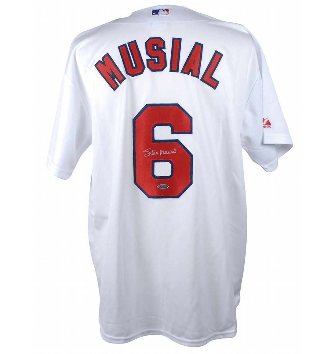 Official Majestic replica St. Louis Cardinals baseball jersey, with sewn on letters and numbers, signed in silver ink on the number on the back. In fine condition.