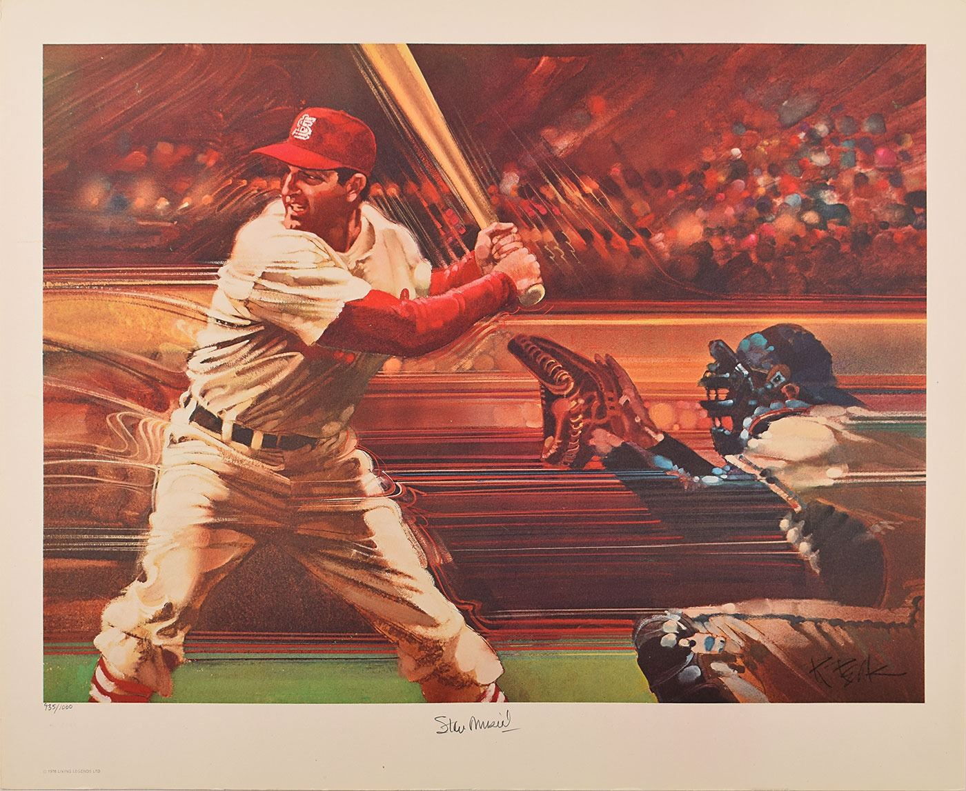 Color limited edition 22 x 18 lithograph of Hall of Fame slugger Stan Musial from the Sports Illustrated 'Living Legends' series, numbered 935/1000, signed in the lower border in pencil by Musial. In fine condition.