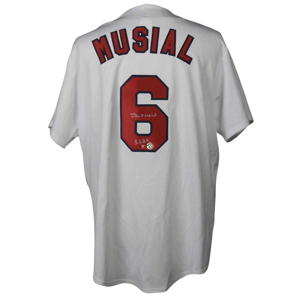 Official Majestic replica St. Louis Cardinals baseball jersey, with sewn on letters and numbers, signed in silver felt tip on the number on the back, “Stan Musial, 3630.” In very fine condition with a Stan the Man authentication label affixed.
