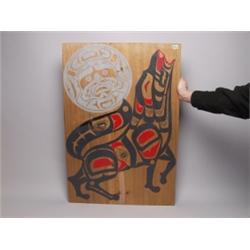 Abalone Inlaid Painted Panel. Repairs to Split in Panel.