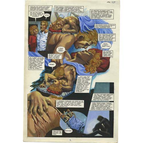 <B>Stan Woch, Mark Farmer, and Fred Von Tobel - Tapping the Vein Book 4 Page Original Art, Group of 4 (Eclipse Books, 1990).</B></I> The Eisner-nominated anthology mini-series, <B>Tapping the Vein</B></I>, brought the best of Clive Barker’s "Books of Blood" short stories to the comics medium. These four hand-painted pages are from the story, "The Madonna," brought to a stunning visual realization by Stan Woch (pencils), Mark Farmer (inks), and Fred Von Tobel (painter). The image area of each page is 10" x 15", and they average in Very Good condition.