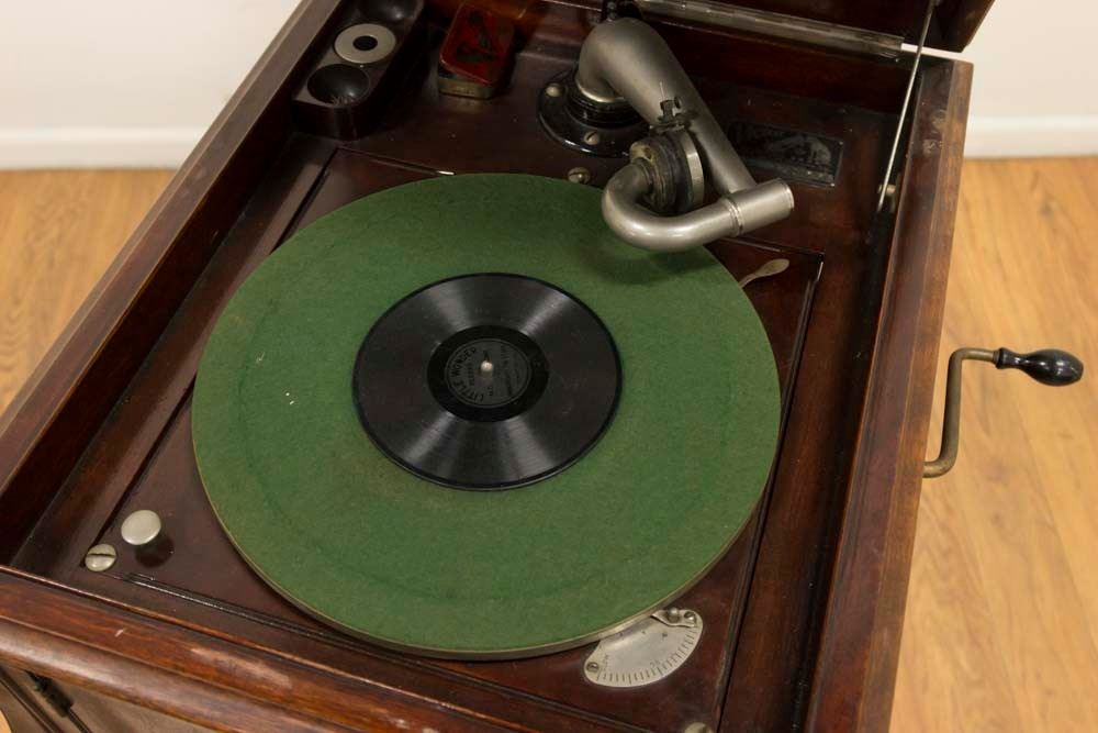 Victor talking machine. Mahogany. From the home of a N.Y. designer. Working order.