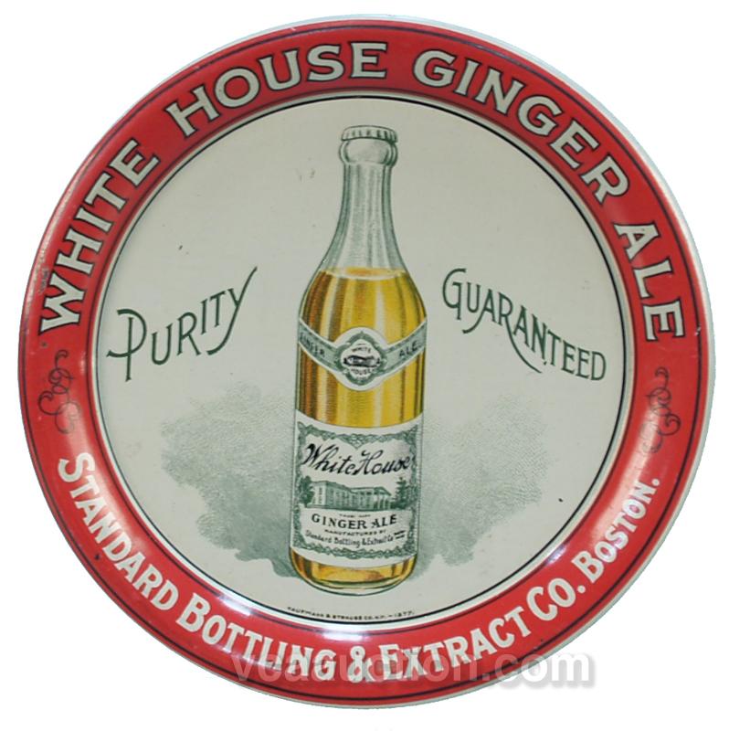 Standard Bottling & Extract Co. Boston Tin Tip Tray, "White House Ginger Ale - Purity Guaranteed" in excellent condition - 4" diam