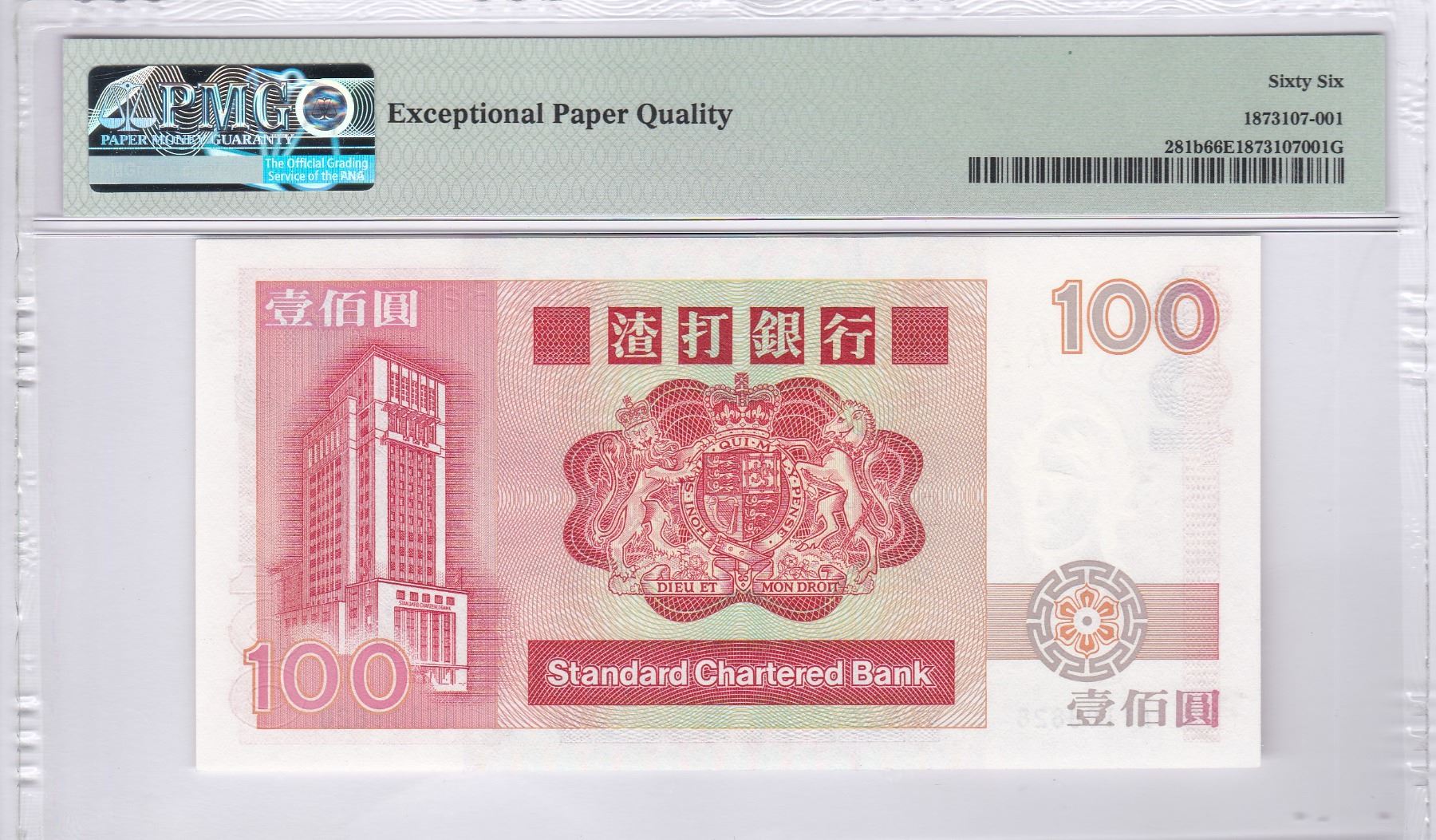 1987,渣打銀行, $100, 編號: AT108828, PMG 66EPQ. 重要年份