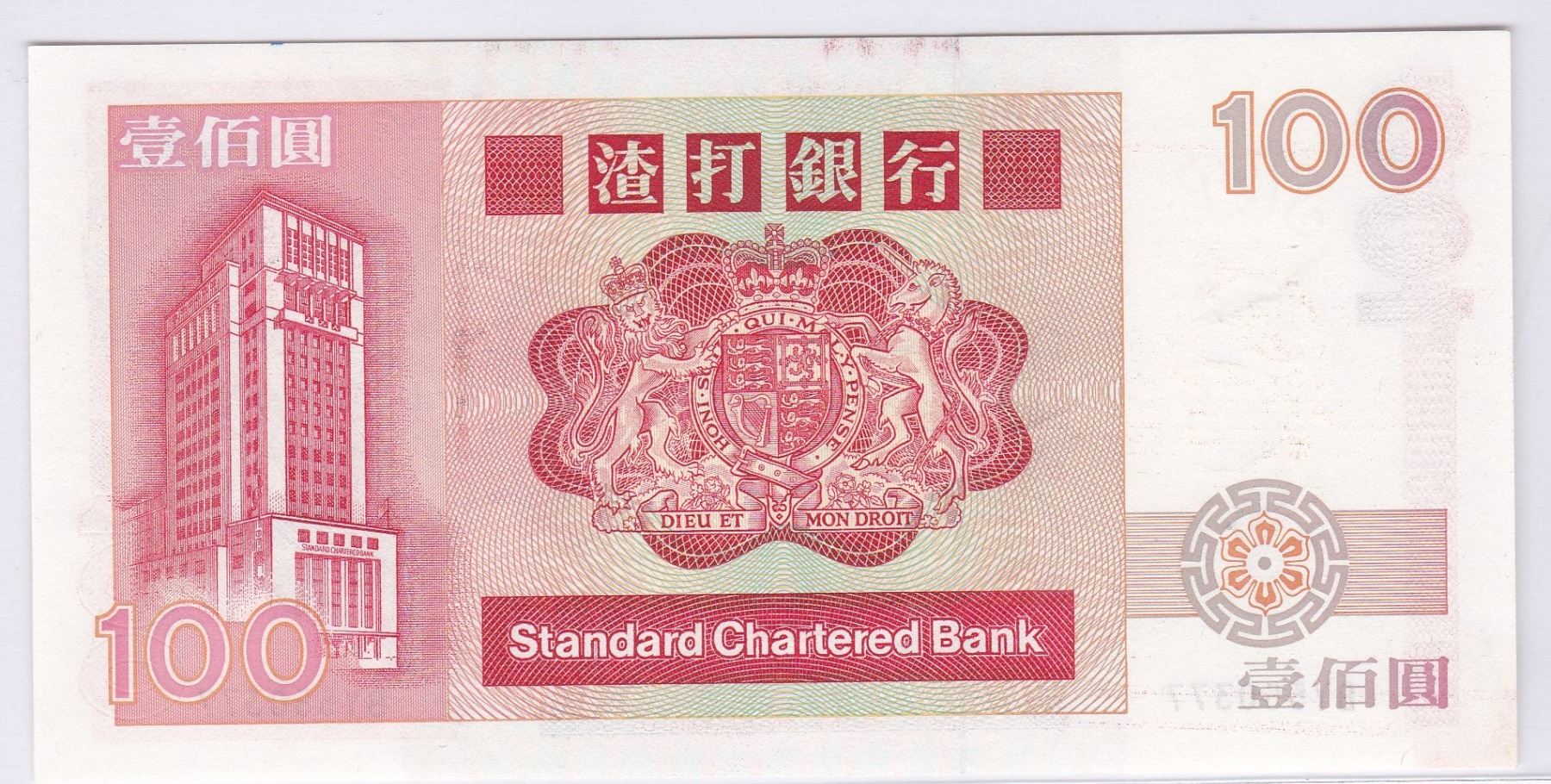 Standard Chartered Bank, 1990, $100, BY550377. UNC condition. Key Date.