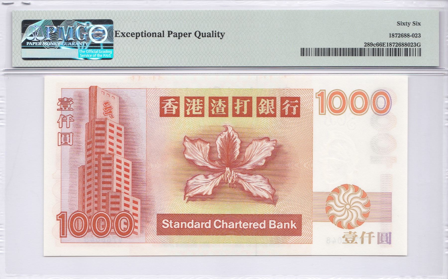 2000, 渣打銀行, $1000, 編號: V766048, PMG 66EPQ, 騎版