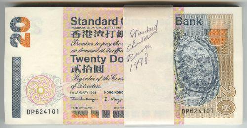 Hong Kong, Standard Chartered Bank Incorporated, 100 consecutives 20 dollars, 1st January 1998, UNC serial DP624101 to DP 624200, Pick number 285c.