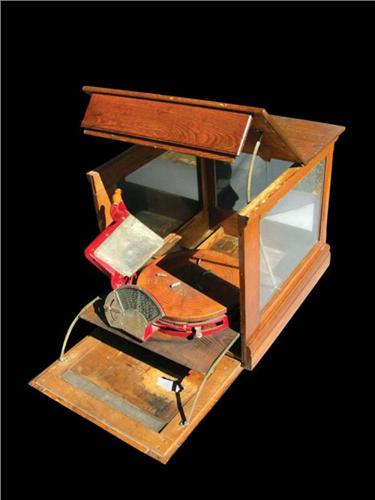 Standard Computing Co, Cheese Cutter, Sutherland and Dow Mfg. Co.-American Specialty Mfg. Co. Original decal, hole in back door otherwise good condition. 27 X 26 X 30 inches.