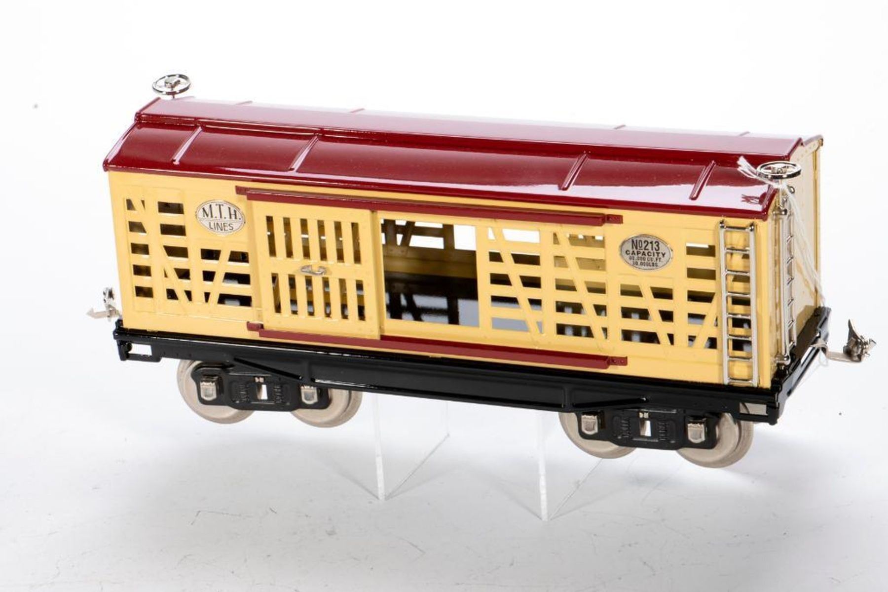 MTH 212. 213,214R, and 216 with Original Boxes. All boxes have storage and shelf wear, cars have light use wear.