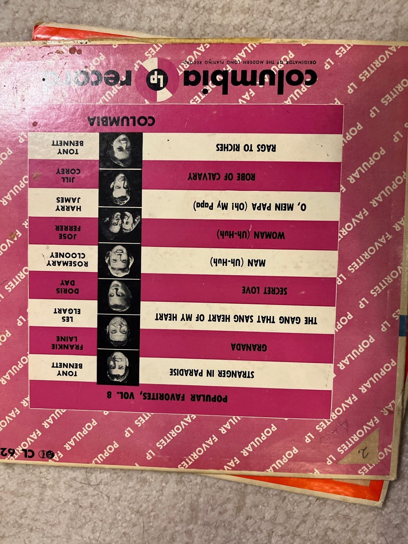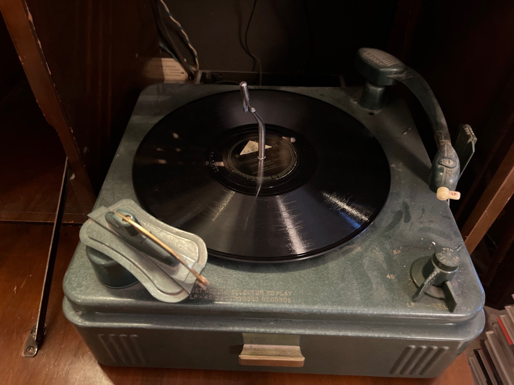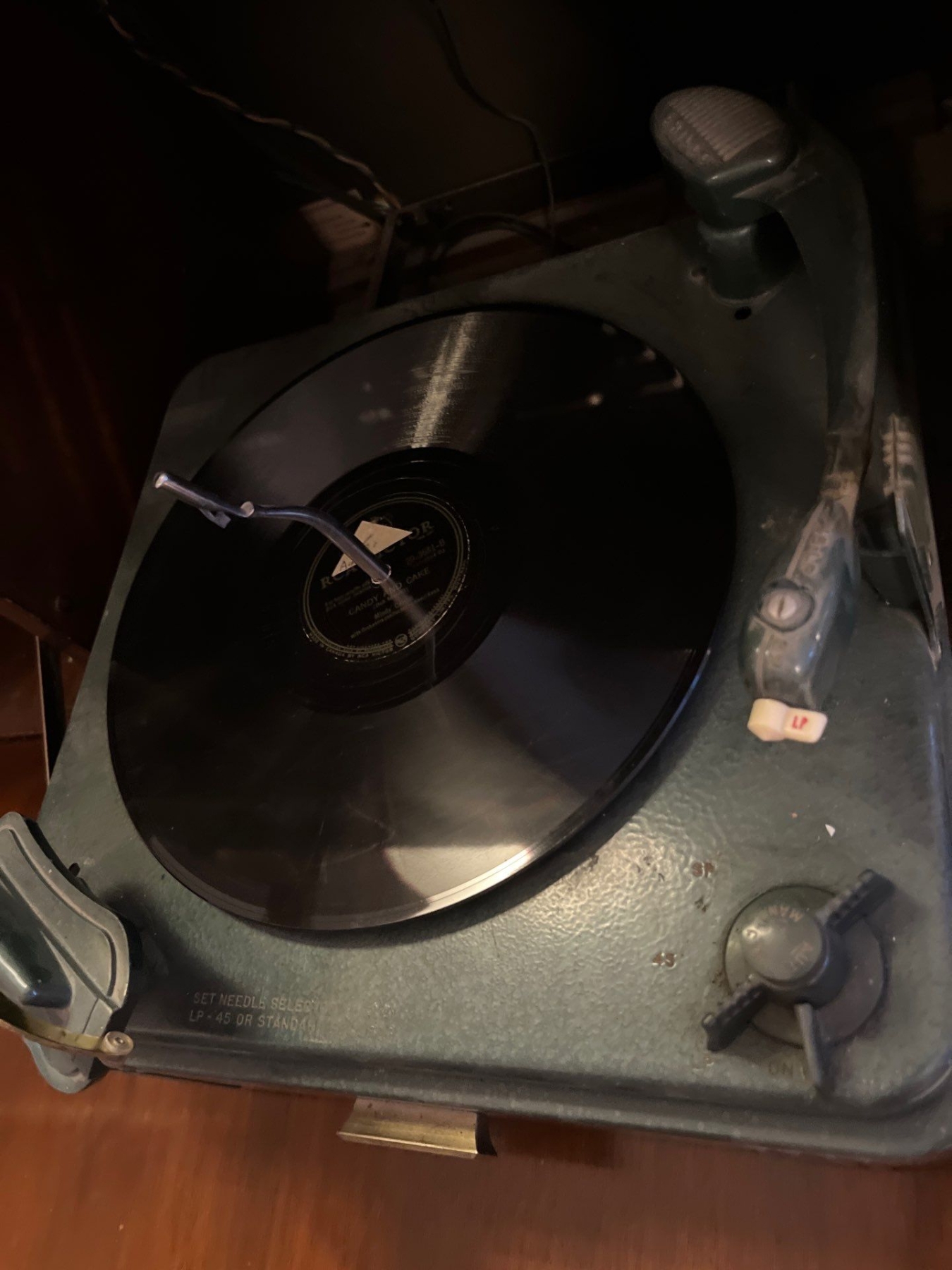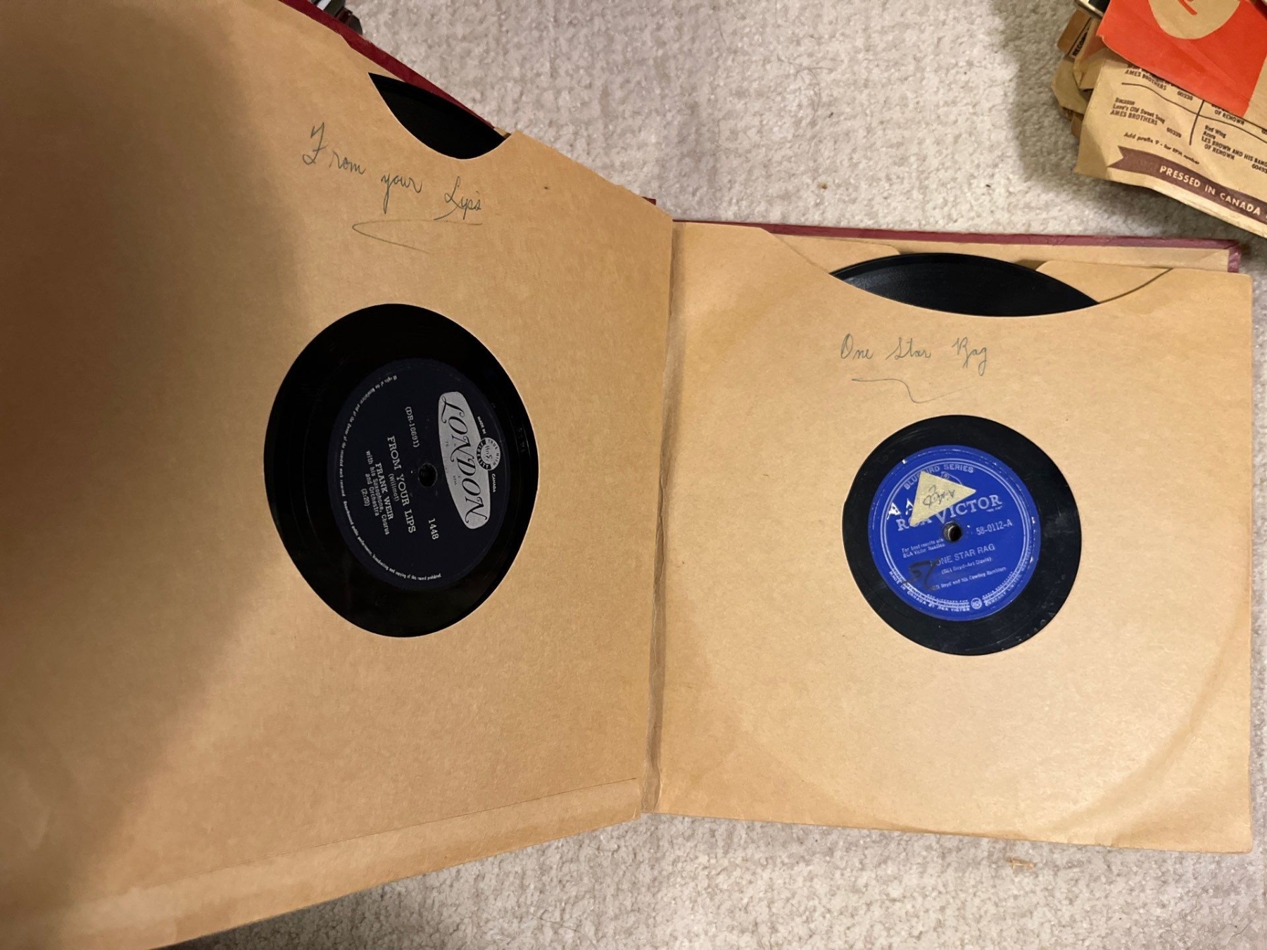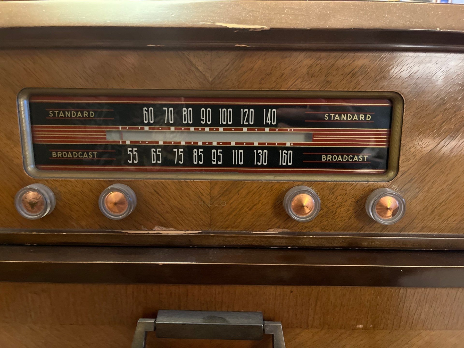 Standard broadcast radio, and record player with a great collection of original 8” records .