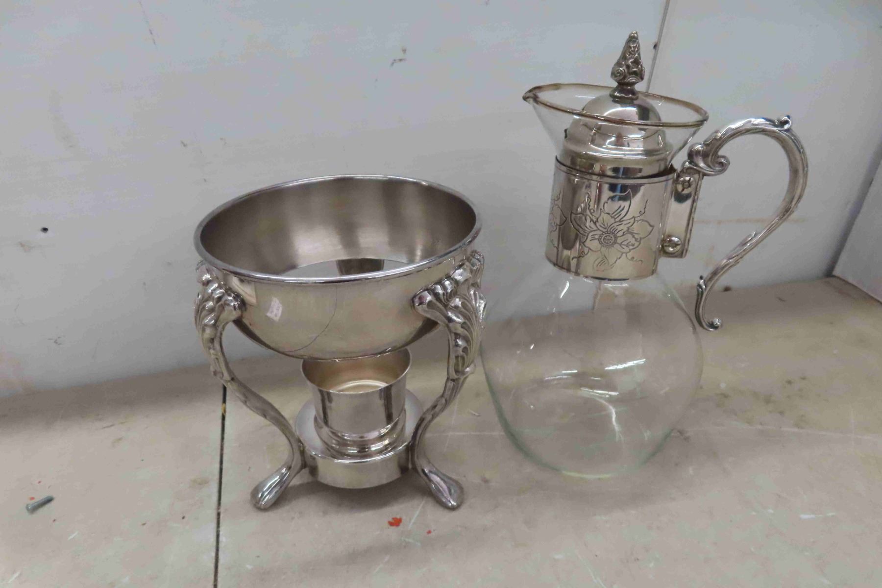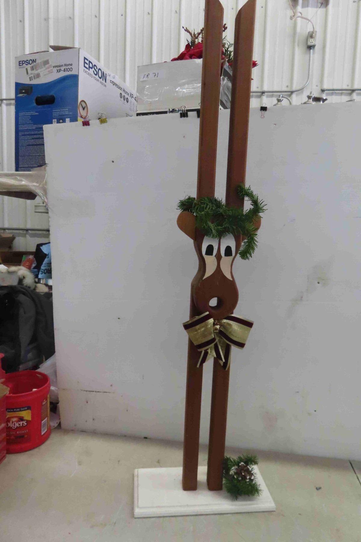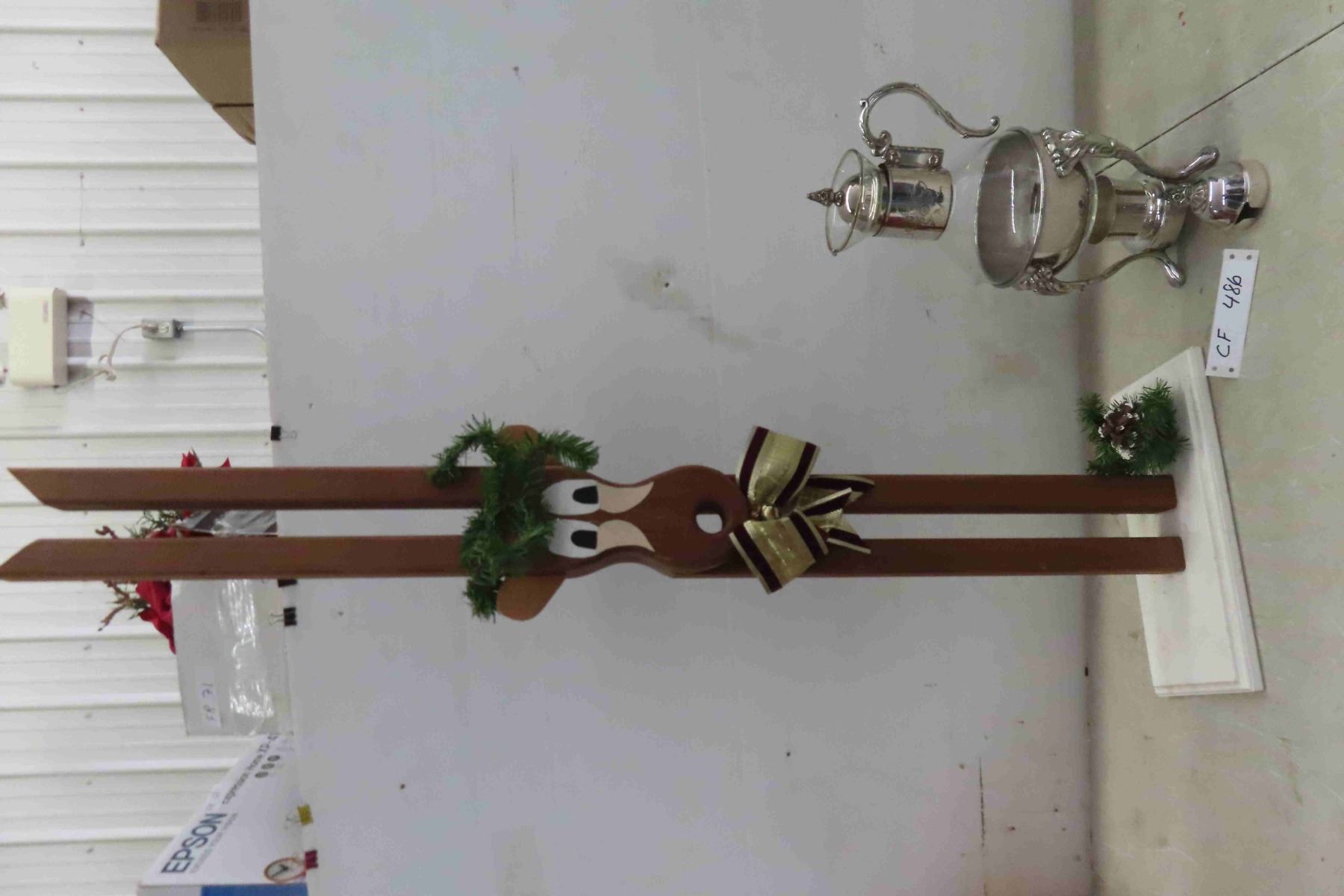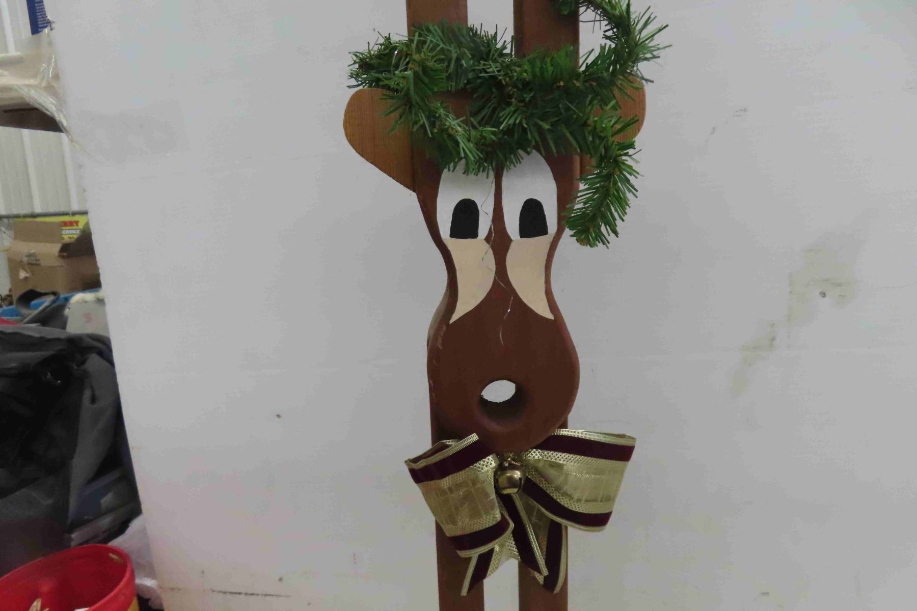 Standing 40"Tall Wooden Reindeer Figure + Glass Coffee Pot with Candle Warmer