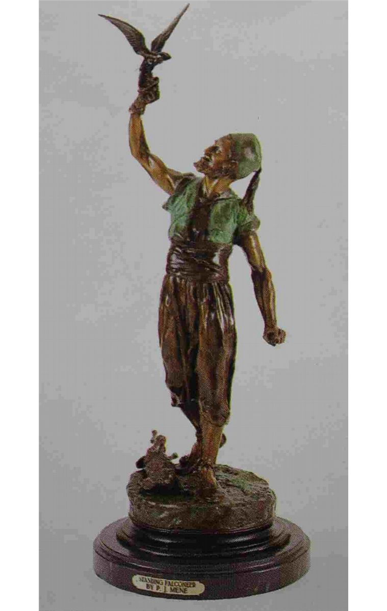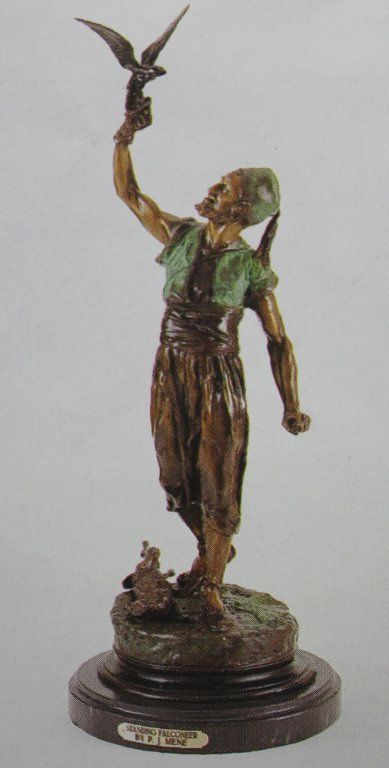 "Standing Falconer" Bronze Sculpture - After Mene - Beautiful Patina - Mounted On A Fine Italian Marble Base - Beautifully Detailed - Signed - Mint Condition - 24.5"H X 10"W - Lost Wax Cast Bronze