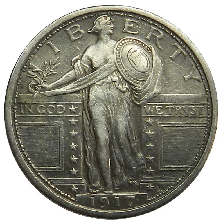 Standing Liberty Quarter, 1917. Type One. Toned Choice EF-AU.