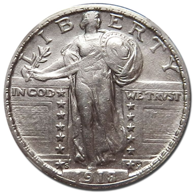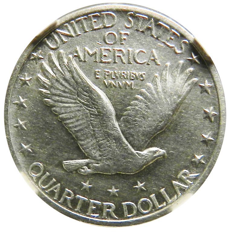 Standing Liberty Quarter, 1918/17-S. Key variety overdate. NGC AU details, cleaned, very appealing with original luster remaining. More difficult to obtain than the 1916 in this condition.