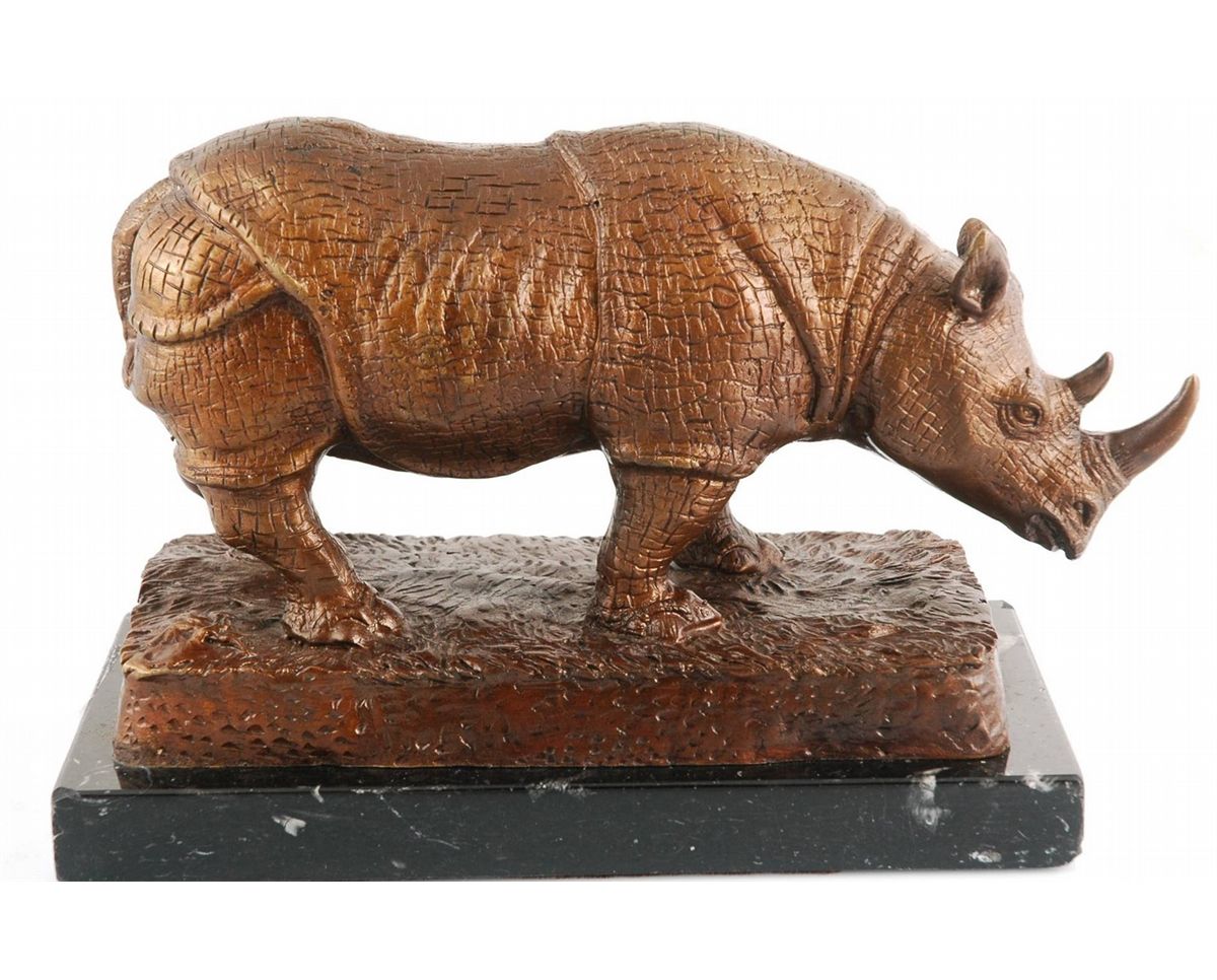 Bronze statue of a rhino standing on marble base. 6.5"H x 8.5"W