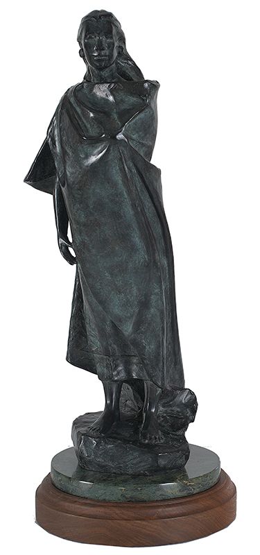 Patricia Warren, b. 1945 | Signed: P Warren [indistinct] © 87 1/7 (back base); "House Bronze", base | Media: Bronze | Dimensions: 20.5 by 7 by 5 inches