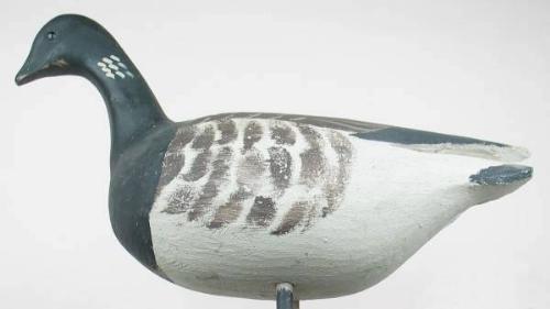 Standing brant with a turned head and glass eyes in XOP. Neck seam is visible. "C" for Grayson Chesser, Jenkin's Bridge, VA impressed into the bottom. (decoy)