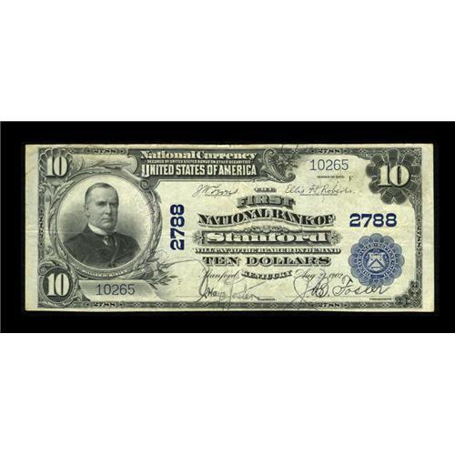 <B>Stanford, KY</B></I> - $10 1902 Plain Back Fr. 624 <B>The First NB</B></I> Ch. # 2788<BR>Last appearing in our 2006 Central Sale sale, and described, "Despite a decent size issue that spanned several decades, large notes from this Stanford bank are in short supply, with nothing listed in the census before 1902 Plain Backs. Even there, the selection is limited, as only four pieces are listed, including this note. This attractive example is as nice as any. <B>Very Fine.</B></I><BR><BR><b>Shipping:</b> Coins & Currency (<a target="_blank" href="http://www.heritageauctions.com/common/shipping.php">view shipping information</a>)