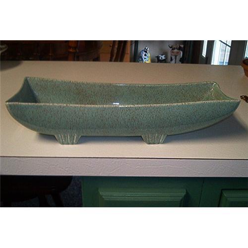 Featuring a "speckled, large, planter by Stanford Pottery, Sebring Ohio. This pottery Company started business in 1945 and burned in 1961. Stanford/Sebring, Ohio, embossed on the bottom. Measures 16 inches long by 5 1/8 inches wide. Depth measures 3 inches; base measures 7 3/4 inches long by 4 inches wide. Excellent to mint condition.