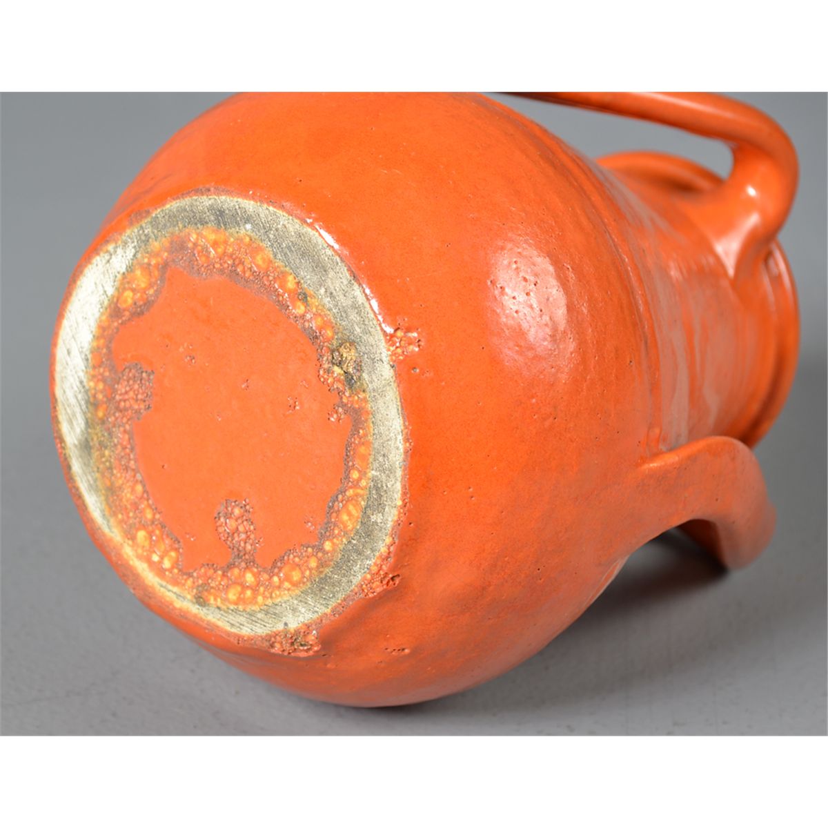 With three shaped handles and burnt orage glaze, 7"H, circa early 20th century. Private collection Gregory, MI.