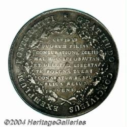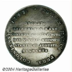 Stanislaus Augustus taler 1793 on the Convention of Targowitz, Nine line inscription in wreath/Six line inscription with date, Dav-1622, KM214, VF.From the Dr. Irving Arenberg Collection. Important notice: Heritage usually auctions material at the rate of 200-250 lots per hour. On some occasions eBay Live bid software or the Internet may not be able to keep up with the pace of the auction. We recommend placing a realistic absentee bid now as insurance to avoid disappointment. Occasionally the auctioneer may eliminate or reject an eBay Live bid, and the auctioneer may also reopen a lot after the close of the eBay live bidding (usually because we missed an audience bid), and may reject your bid even if it shows you as the winning bidder. By bidding via eBay Live, you agree that Heritage may award the lot to another bidder at its sole discretion under the circumstances described above or any other reasonable circumstances. Also please note that all Heritage lots purchased through eBay Live carry a 20% Buyer's Premium. Please make sure you read the Terms and Conditions before you bid.