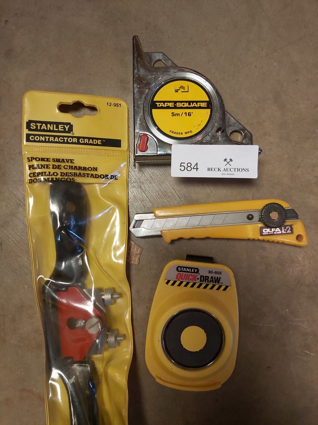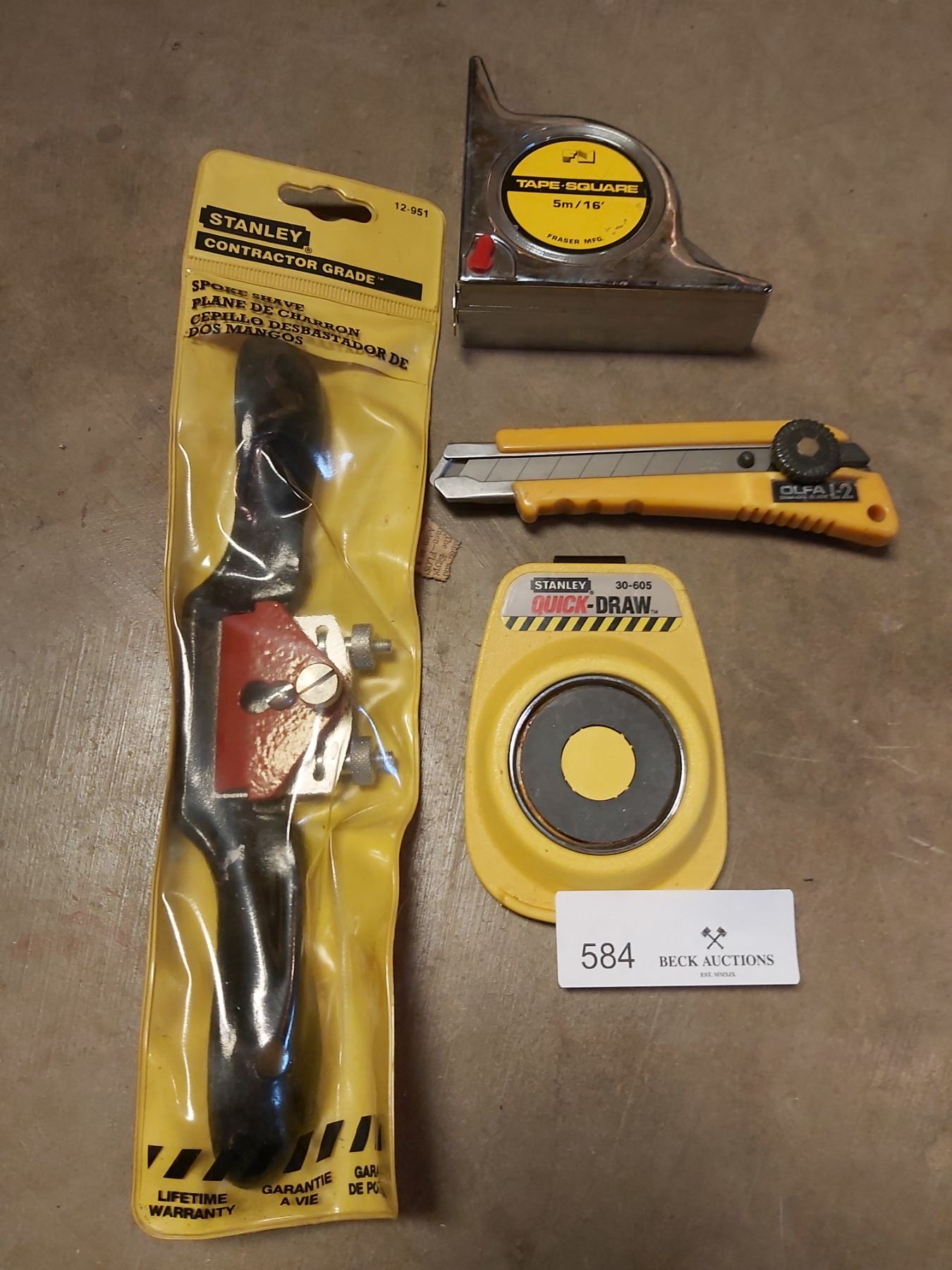 Stanley Contractor Grade Spoke Shave Plan Model 12-951, Tape Square, Quick Draw Magnet