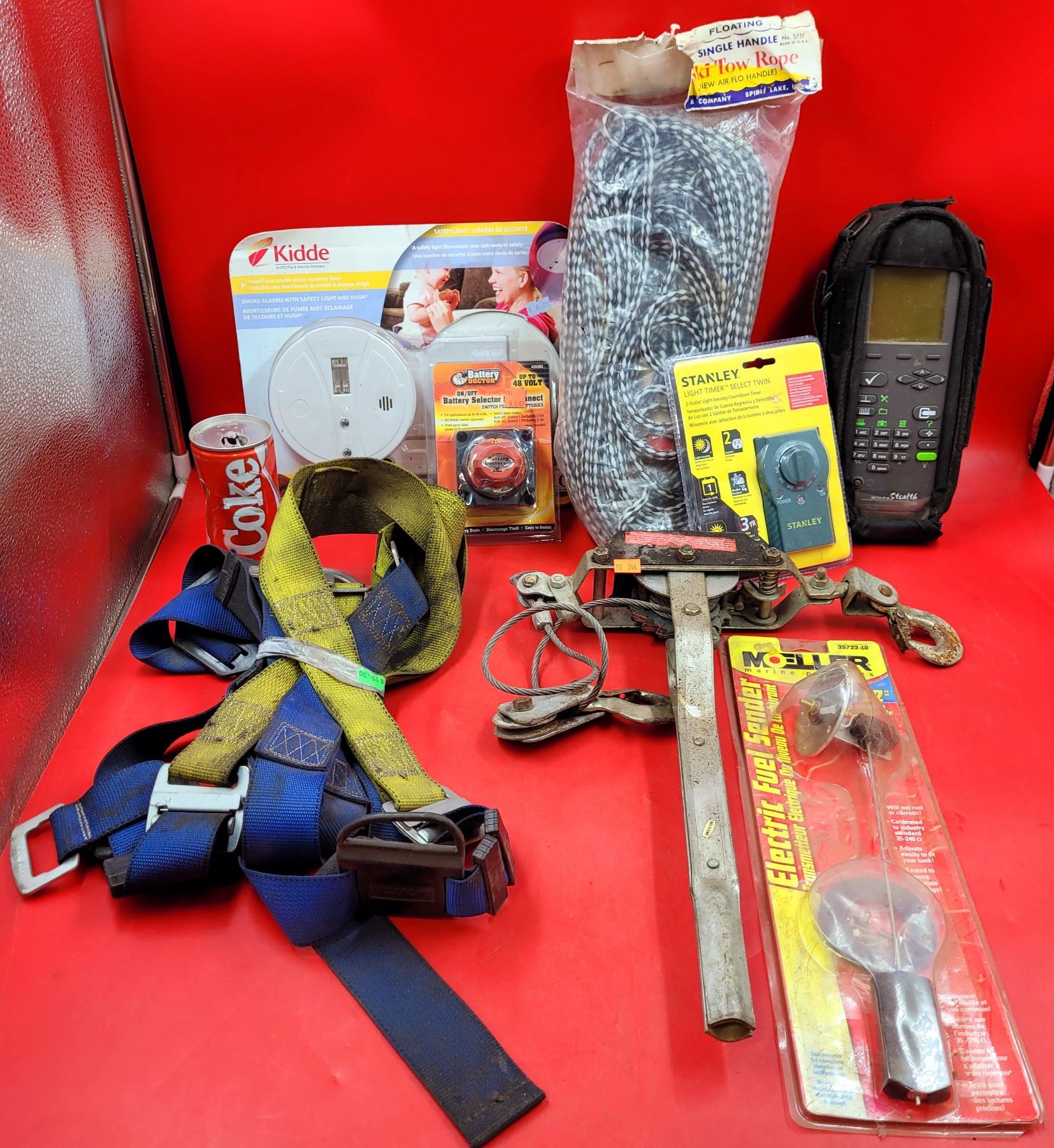 Stanley Light Timer, Battery Selector, Ski Tow Rope & Tool Lot
