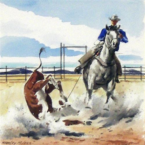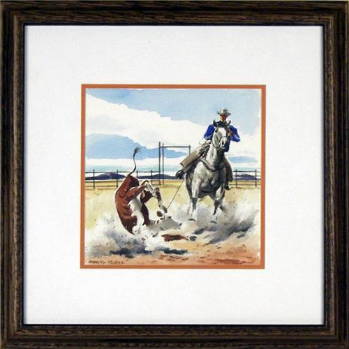 Stanley M. Long (1892-1972) Watercolor, Cowboy Roping Scene, sight size 7 1/2" x 7 1/2", signed lower left