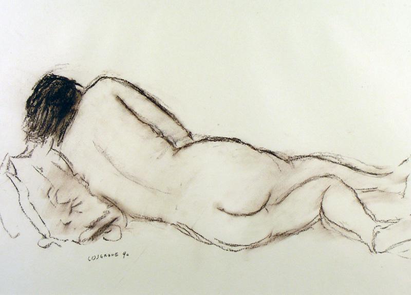 Canadian CGP, RCA [1911-2002] SLEEPING NUDE; 1990 conte on paper 12 x 16.5 in. (30.5 x 41.9 cm) signed & dated