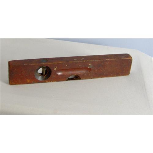 This wooden level has been with us a long, long time! It is made of stained hardwood and metal and measures 14 x 2 1/4 x 1 1/4 inches.<p>