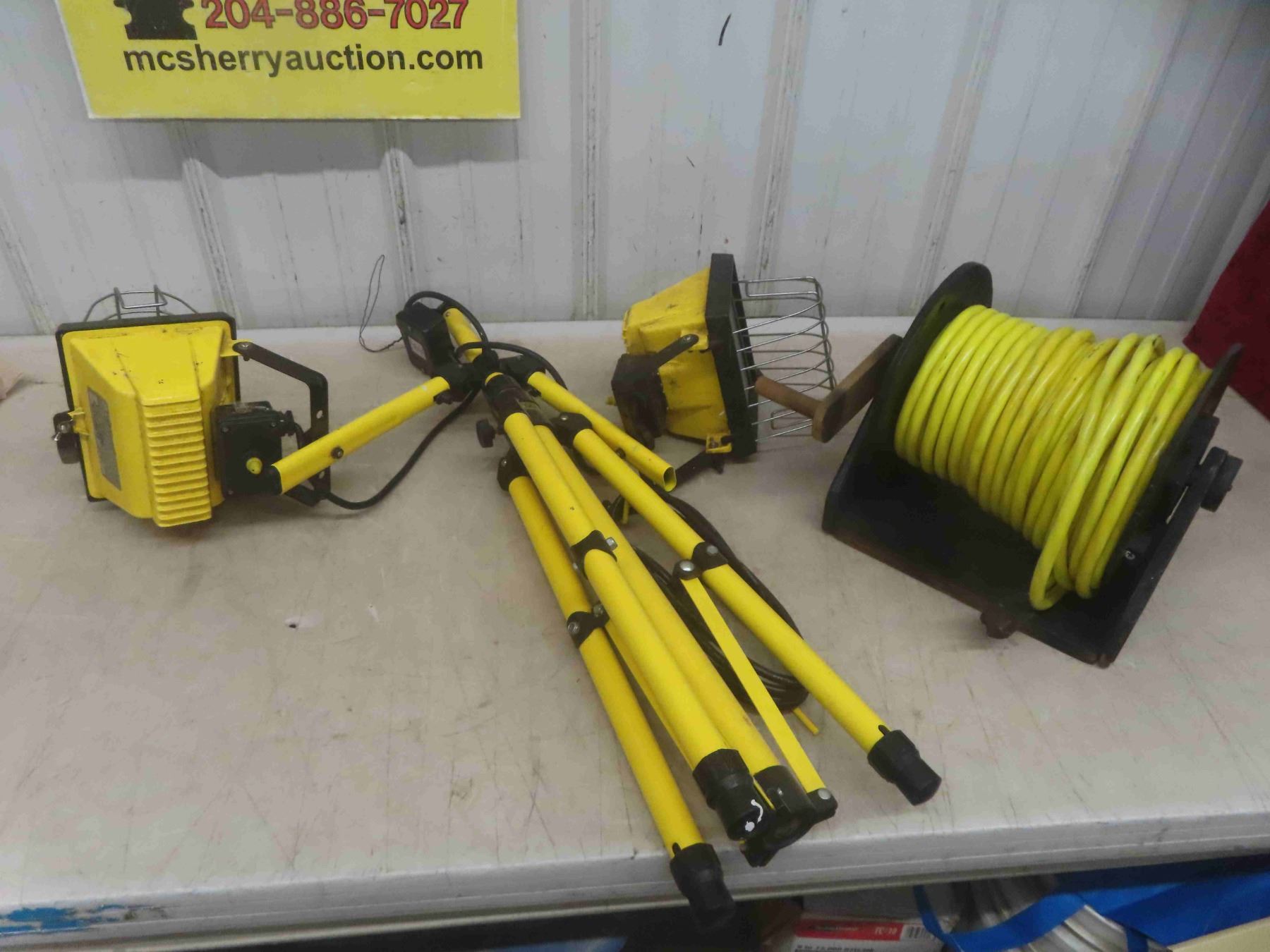 Stanley Work Lights w/ Extendable Stand, 75 FT. Extension Cord on Windup Reel