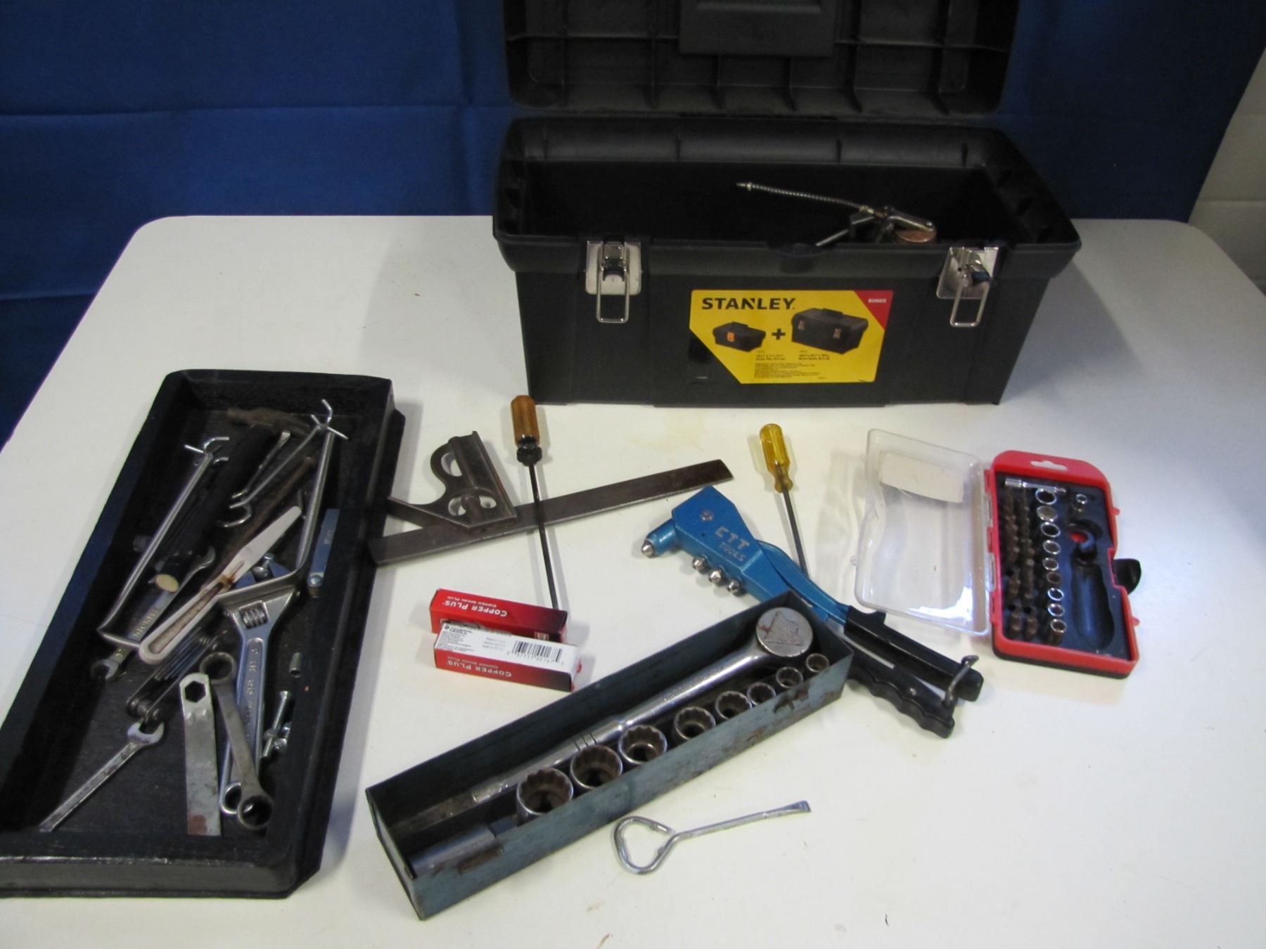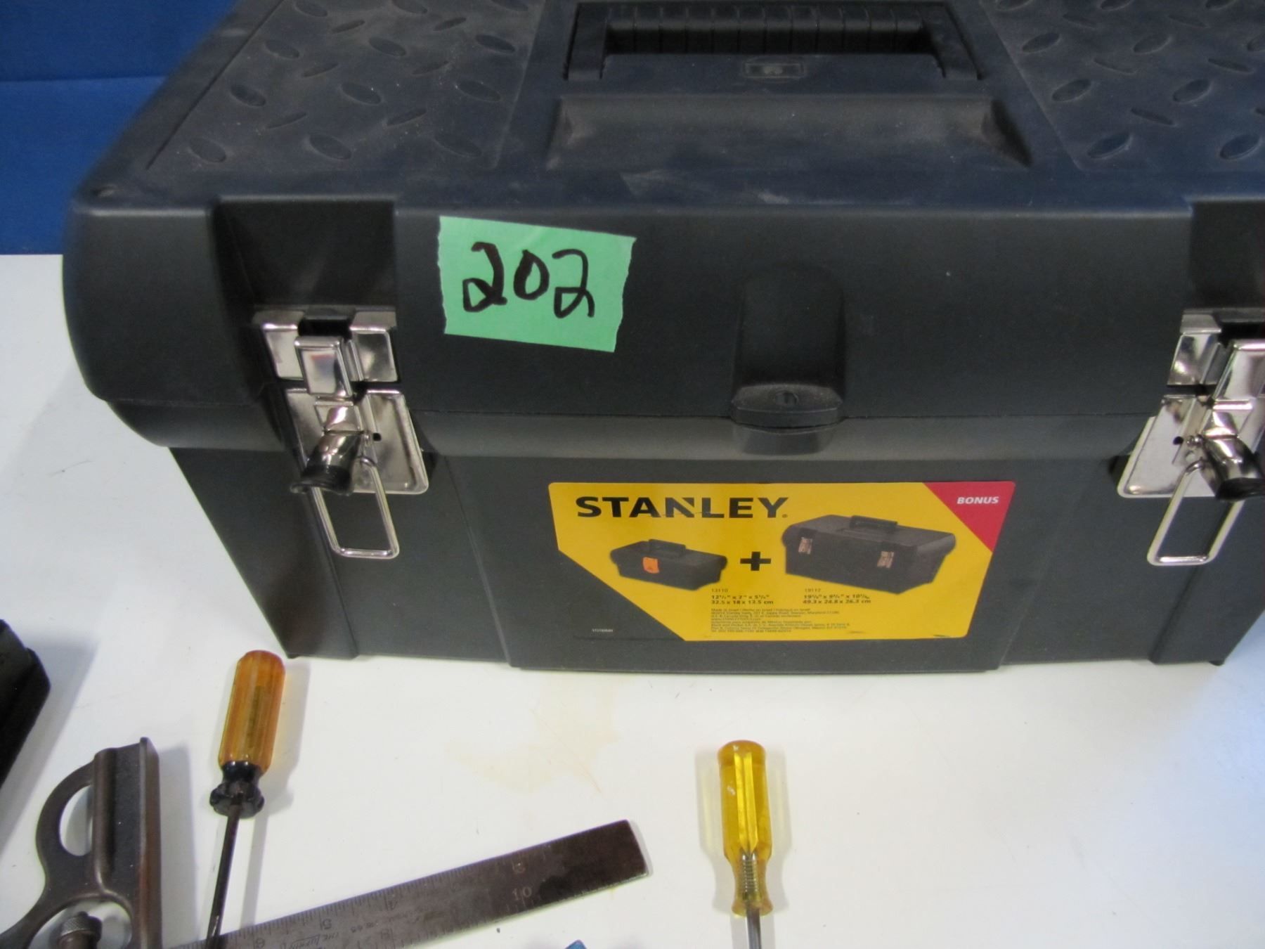Stanley tool box with assorted tools