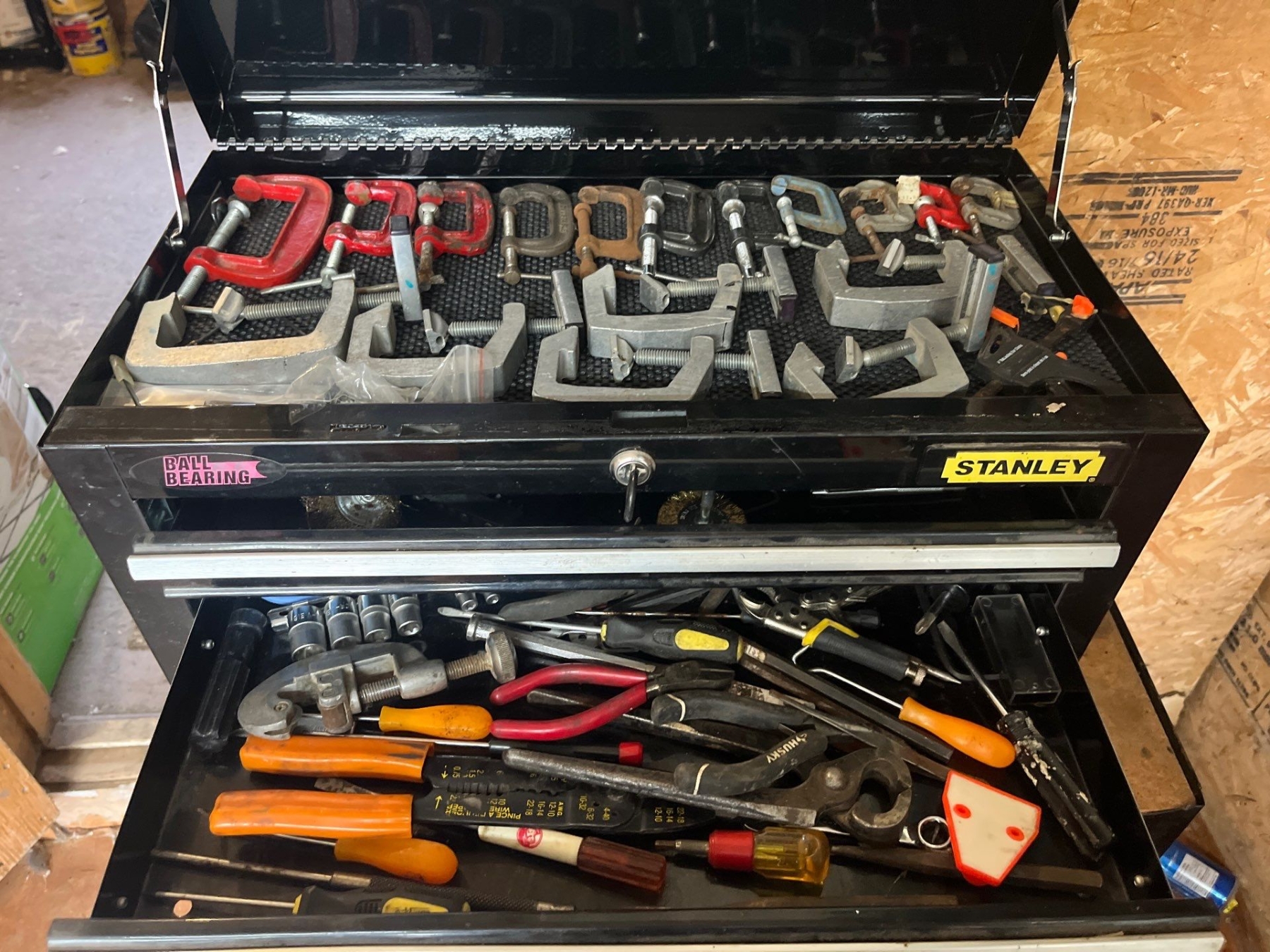 Stanley two piece rolling toolbox with contents
