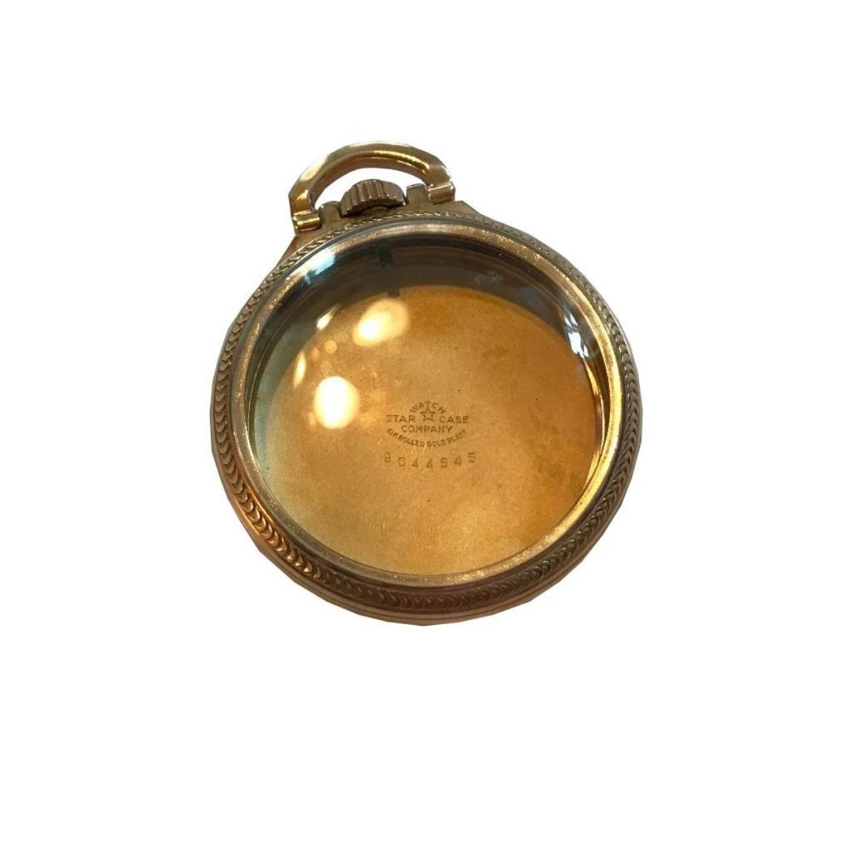 Star Watch Case Co. 10kt yellow rolled gold plate & stamped # 9044545. In good condition.