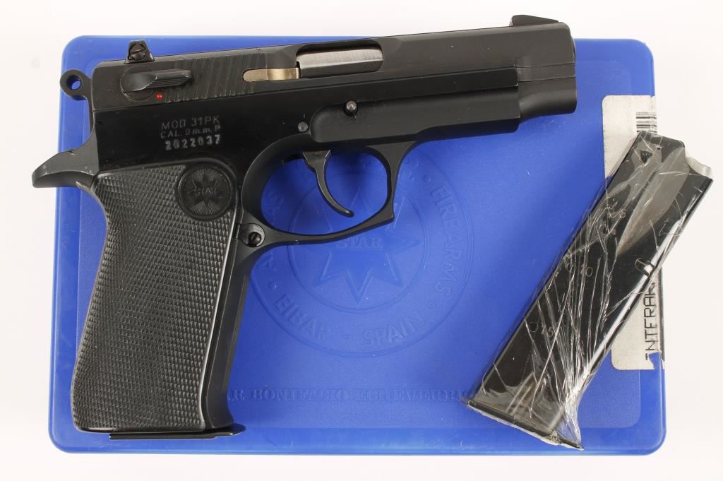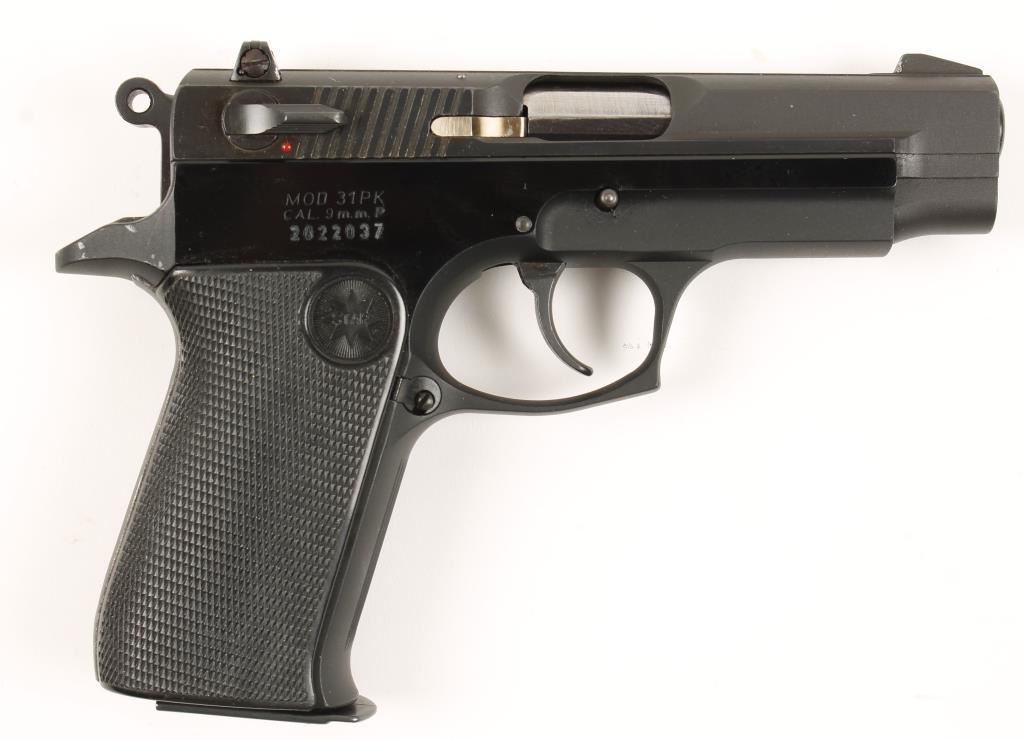 Blued double-action semi-automatic pistol with a 4" barrel and two 15-round magazines. Finish is a matte and polished blue in fine condition. Three-dot sight with adjustable rear. Manual safety with de-cocker. Black rubber grips with serrated front strap. Bore is mirror bright with sharp rifling. Functions well. Includes plastic factory box with second magazine and cleaning brushes. Condition is fine. *Modern Firearm*