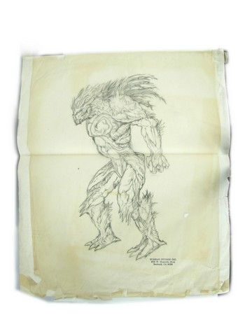 A stunning over-sized original pencil concept drawing from the legendary Burman Studios in Los Angeles for the 1997 sci-fi family adventure "Star Kid". This massive detailed alien creature is created on artist tissue tracking paper, and is then mounted on thicker draft paper. It includes the official Burman Studios, Inc. copyright stamp. This eye-popping drawing has age patina, and some tears (but not any on the drawing itself), and has been folded in half horizontally. Perfect for framing! (Drawing is approx. 25" x 18"). Comes with a COA.