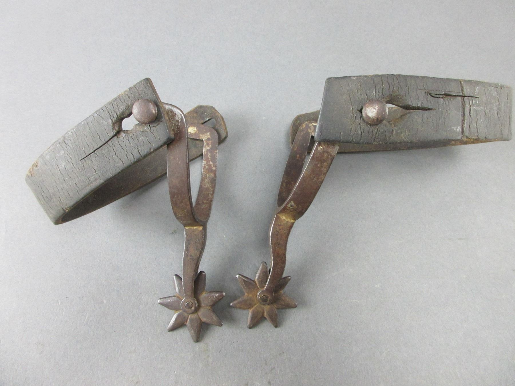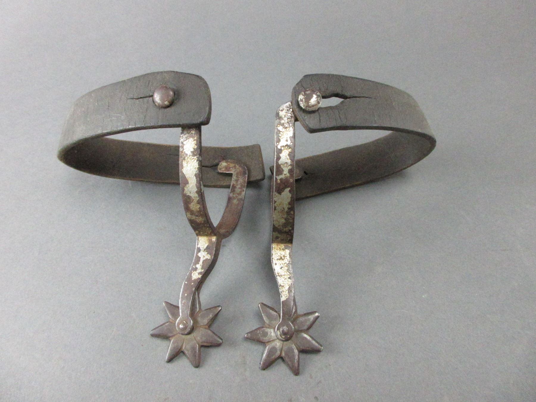 Star Marked Buermann Spurs- .5" Bands- 2" Shanks- 7 Point Rowels- Straps- Poor Condition